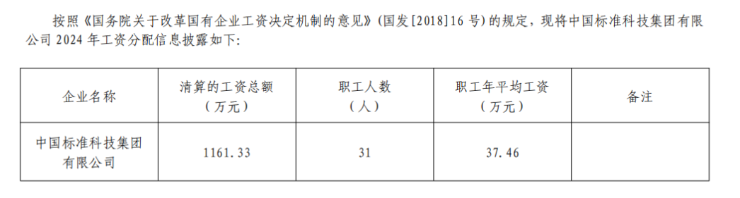 2024年中國(guó)標(biāo)準(zhǔn)科技集團(tuán)有限公司工資分配信息披露