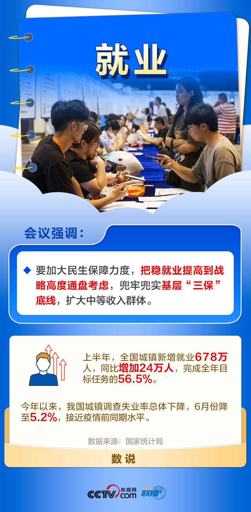 會(huì)議強(qiáng)調(diào),要“用好政策空間、找準(zhǔn)發(fā)力方向,扎實(shí)推動(dòng)經(jīng)濟(jì)高質(zhì)量發(fā)展”“大力推動(dòng)現(xiàn)代化產(chǎn)業(yè)體系建設(shè)”“通過增加居民收入擴(kuò)大消費(fèi)”“切實(shí)優(yōu)化民營(yíng)企業(yè)發(fā)展環(huán)境”“加大民生保障力度”等。其中,消費(fèi)、住房、就業(yè)等工作部署事關(guān)你我,一起來了解。
